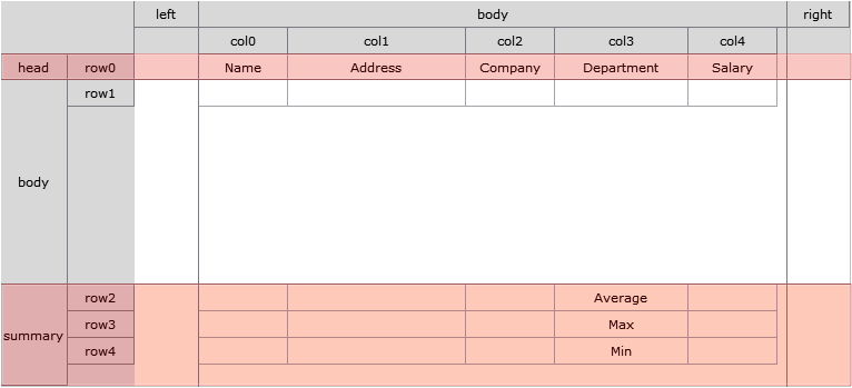 To change the width, move it while holding the mouse button when the pointer is changed at the border of Head Column. To change the height, move it while holding the mouse button when the pointer is changed at the border of each Row.