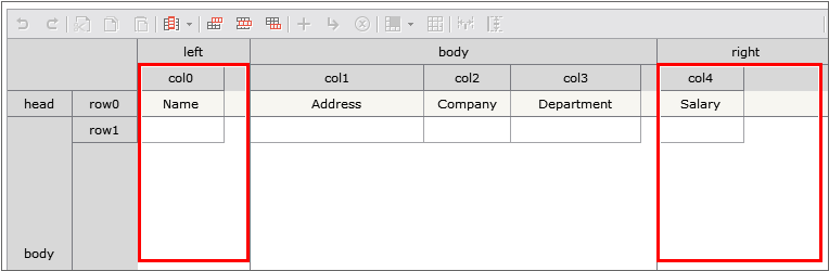 1. Because of the addition of head row and body row, two rows of Name, Salary Column are created. Combine them into one. Select Cell to merge, and click the Merge Cells button to merge them into one Cell.