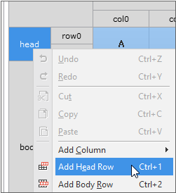 Select the head area and select [Add Head Row] from the context menu to add Row.