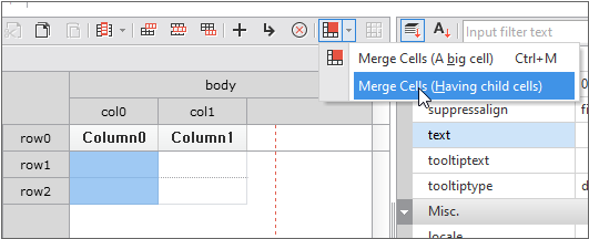 Let us take a look at how to select the child cells of merged cell and specify properties in Nexacro Studio.