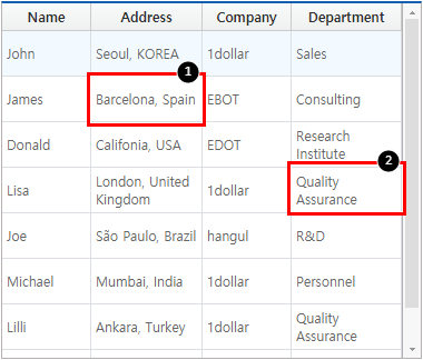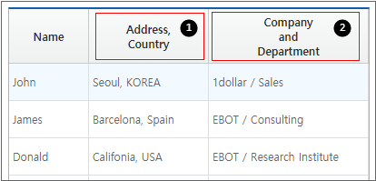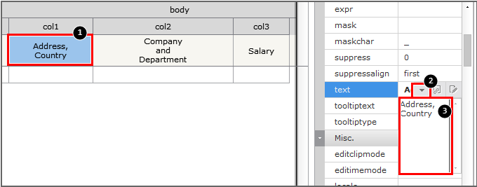 1. Select each cell under Address, Company Column in the newly added head row, and enter EMail, Department in the text property.