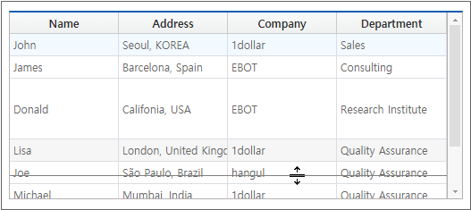 If the length of the data is too long or consists of several lines than the size of Cell, the data may appear cut off. In this case, if you use the automatic line break and cell height adjustment function, it can be displayed in Grid regardless of the data length.