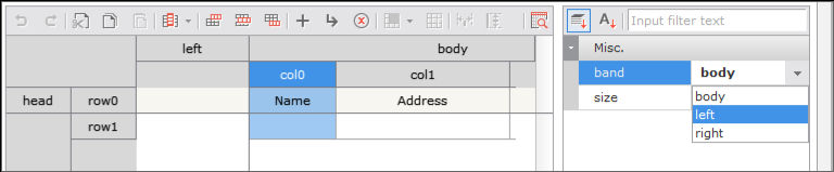This is the method that sets the column properties. You can specify 2 parameters, which are band, size. In the example, the band property is changed.