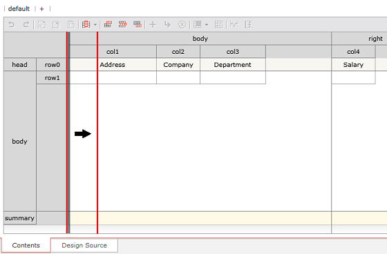 Clicking the cell in the Body area displays the corresponding column title in the cell.