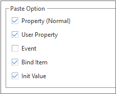 There is a property that allows you to select multiple values when selecting a value in the Nexacro Studio option window. For example, in the Form Design > Paste Special option, you can select multiple target components to copy.