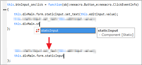 };When using the code hint function in the Nexacro Studio script window, it is automatically entered without entering the "form" item.