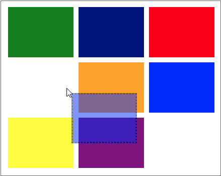 The Div component placed on the right is a temporary Div component to express movement when dragging. Set the visible property value to false and set the border property appropriately. To make the color of the moving Div component lighter, set the opacity property value to 0.5.