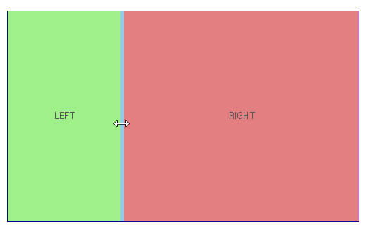 In the example, only the LEFT, RIGHT areas are resized, so the cursor property value is set to "e-resize". Property values can be selected according to the direction of moving the splitter.