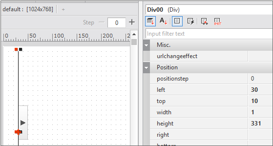 Place the Div component and the Button component on the screen. For the Div component, set the value of the width property to 1 to make it appear folded.