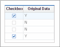 You can merge two or more cells to make them look like a single cell. However, even if the merged cell has child cells, it operates as a single cell, so you cannot edit it immediately. The example shows how to process checkboxes contained in merged cells.