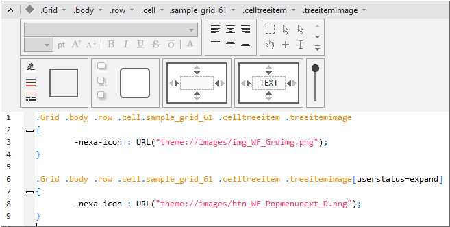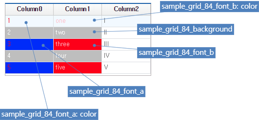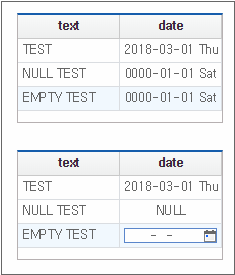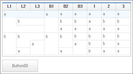 The following is an example of Grid in which the displaytype property of Cell is set. Among the two Grids, the upper one is Grid with the displaytype property set, and the lower one is the one with no setting.