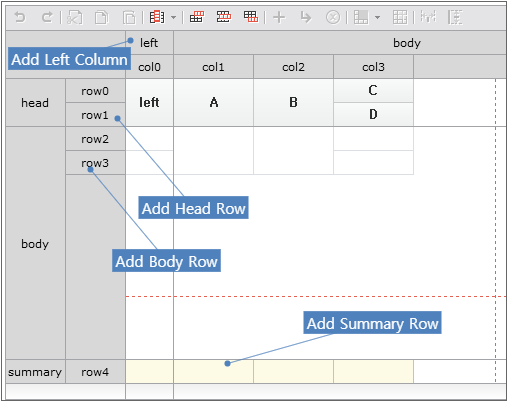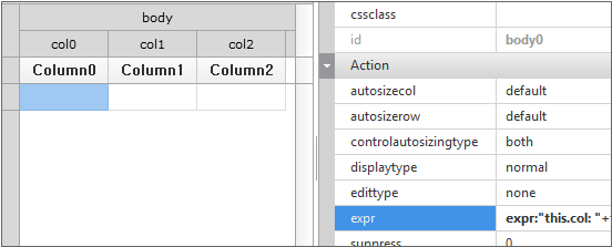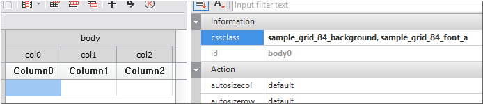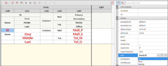 When Grid is first created, the format is not defined because it is impossible to know which data will be expressed in what form. In order to create the format, the user can directly create it using Grid Contents Editor or bind the Dataset.