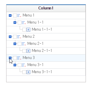 In the case of setting as the Tree type, you need to set treelevel indicating the depth of the tree, treestate indicating the status of the tree, and the treecheck property setting the checkbox of the tree in the Cell setting.