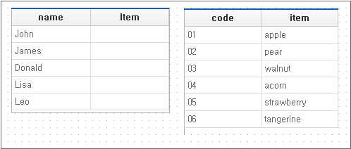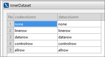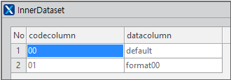 Select Combo created in step 1 and find the innerdataset property in the Properties window. Click the ... button next to the innerdataset property to open the InnerDataset Editor window. Enter the following in the window, and when the input is complete, click the OK button to complete the binding.