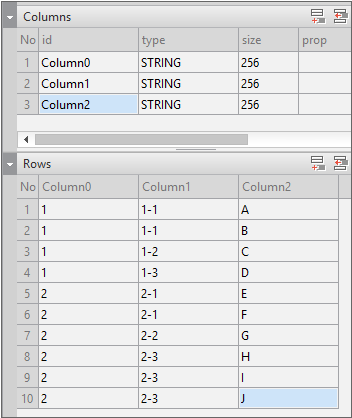 The following shows the Column structure of Dataset00 and Dataset01. Since they have different data and Column structures, they cannot be used by sharing the same format.