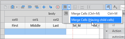 Select the First, Middle, and Last columns, then use the toolbar to choose "Merge Cells (Having child cells)" to merge the three columns.