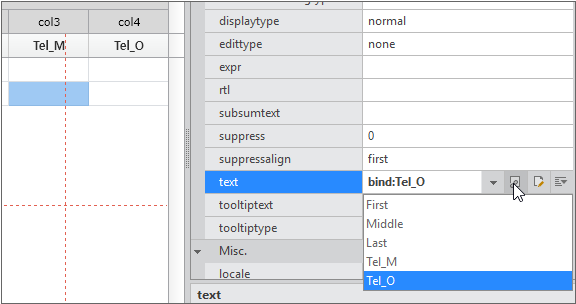 Delete the Tel_O column, set the text property of the second row in the Tel_M column to “Tel_O”, and change the header to “Tel”.