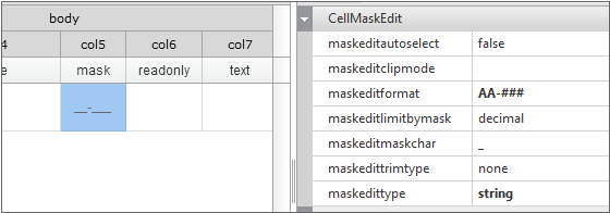 Write the fn_getMaskString function set as the cell expr property value of the Grid component as follows.