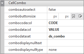 For example, in the case of setting as the Combo type, you need to bind the dataset to be output to the combo in the Cell setting and set the code and data.