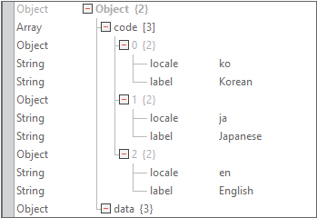Among the data, the object value under the code array will be used as innerdataset of the Combo component.