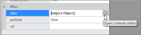Click the button next to the data property and run [Json Contents Editor].