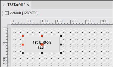 Save the changed content and select the [QuickView] item in the toolbar. The Button component is displayed on the screen as the Nexacro browser is executed. Run the code previously written while loading the screen and check that the text property of the Button component is changed.