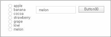 Place the Edit. Static, Button, Radio components as shown in the example screen. Each of the innerdataset property values of the Radio component is as follows.