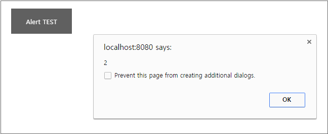 구글 크롬 브라우저를 사용하는 경우에는 예제 실행 시 경고 대화상자에서 "Prevent this page from creating additional dialogs"라는 메시지를 볼 수 있습니다. 해당 항목을 체크한 경우에는 더는 경고 대화상자가 나타나지 않습니다. 다시 대화상자가 나오게 하려면 브라우저를 재시작해야 합니다.