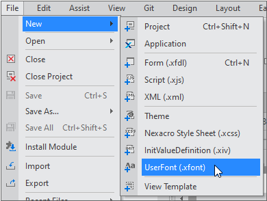 UserFont 파일을 새로 생성합니다. 메뉴[File > New > UserFont] 항목을 선택합니다.