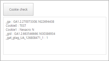 [Cookie check] 버튼 클릭 시 TextArea 영역에 쿠키 정보를 표시합니다.