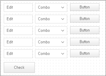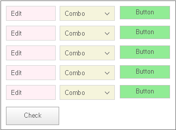 [Check] 버튼을 클릭하면 Edit, Combo, Button 컴포넌트의 배경색이 수정됩니다.
