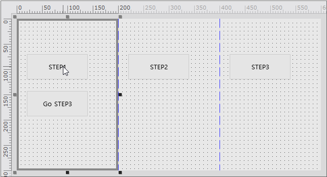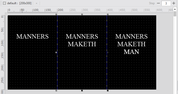 Form을 생성하고 width, height 속성값을 200, 300으로 지정합니다. 그리고 stepcount 속성값을 3으로 지정합니다. 화면이 3개로 분할되면서 처음 생성한 Form의 크기만한 영역이 stepcount 속성값에 지정한 숫자만큼 생성됩니다.