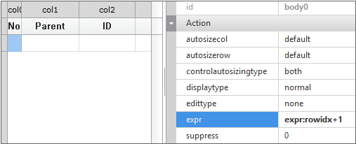 Dataset01 오브젝트를 선택하고 Grid 컴포넌트에 바인딩합니다.