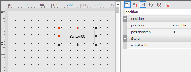 Button 컴포넌트를 배치합니다. 컴포넌트가 배치된 영역에 따라 positionstep 속성값이 달라집니다. 컴포넌트가 명확하게 특정 영역에 위치하지 못하고 걸쳐 있는 경우에는 앞부분이 걸친 영역이 positionstep 속성값으로 지정됩니다.