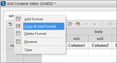 레이아웃은 Form 생성 시 지정할 수 있고 Form 생성 이후에 추가할 수 있습니다. 이번 예제에서는 Form을 생성한 후 추가하는 방식을 사용합니다. [Design] 모드 화면에서 창 타이틀 아래 영역에 오른쪽 마우스 클릭 후 컨텍스트 메뉴에서 [Add Layout] 항목을 선택합니다.