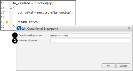 2 | Number of ignore | 설정한 횟수만큼 중단점을 무시합니다. |