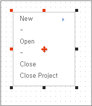 툴바에서 PopupMenu 항목을 선택한 후, Form 위에 드래그 앤 드롭해 생성합니다. 빈 흰색 상자가 화면에 표시됩니다.