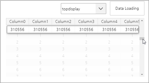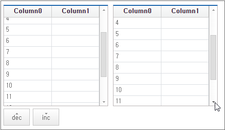 Grid 컴포넌트 아래에 있는 버튼을 클릭하거나 마우스 휠 동작으로 움직이거나 트랙바를 잡아서 끌어 이동할때 오른쪽 Grid 컴포넌트는 한 행씩 움직입니다.