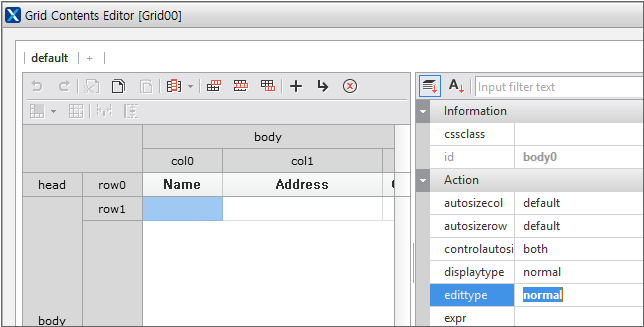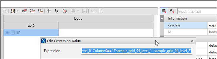 Grid Contents Editor에서 cssclass 속성값을 아래와 같이 지정합니다.
