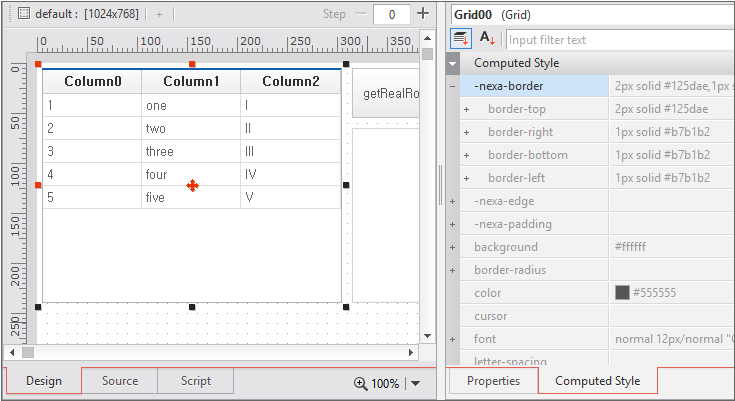 QuickView(Ctrl + F6)로 실행한 후 Grid 컴포넌트의 Row를 선택하고 끌어다가 새로운 Row 위치에 놓습니다.