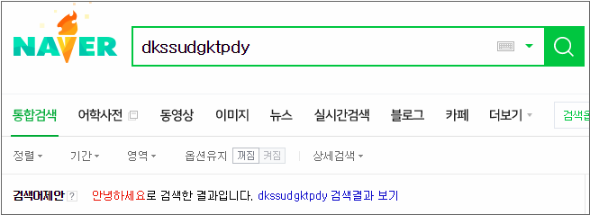 간혹 영문 자판 상태에서 한글을 입력하는 경우가 있습니다. 이런 경우 잘못을 인지하지 못하고 계속 입력하는 경우가 있는데 이를 뒤늦게 발견하면 다시 입력해야 합니다. 검색창에서 이런 실수가 많이 나타나고 있어서 아예 검색 포털에서는 사용자가 영문 자판으로 한글을 입력하면 혹시 이걸 찾은 것이 아니냐고 물어보기도 합니다.