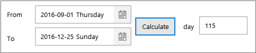 일요일에서 목요일 사이의 날짜를 선택하면 다음날을 두 번째 Calendar 컴포넌트에 표시하고 금요일, 토요일을 선택한 경우에는 월요일을 표시합니다.