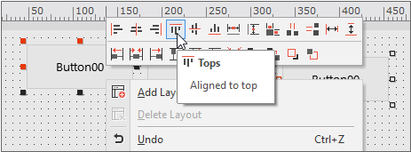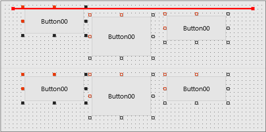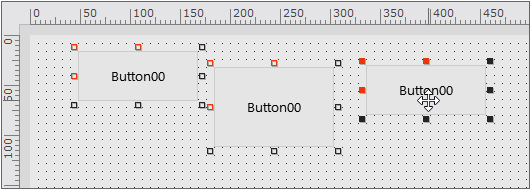 이번 예제에서는 첫 번째 버튼을 기준으로 컴포넌트의 Y 좌표값을 정렬하고 컴포넌트의 크기를 변경합니다.