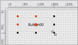 디자인 화면에 배치된 컴포넌트를 클릭합니다. 컴포넌트는 선택된 상태로 변경됩니다. 컴포넌트가 선택된 상태에서는 크기를 변경할때 사용하는 트래커(검은색 또는 빨간색 점)이 표시됩니다. 트래커 위에 마우스포인터를 가져가면 각 트래커에 해당하는 방향 모양으로 마우스 포인터가 변경됩니다.