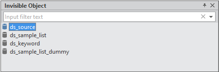 데이터를 테이블 형태로 저장하는 Dataset 오브젝트나 모바일 기기에서 사용하는 DeviceAPI 오브젝트가 보이지 않는 컴포넌트입니다. 보이지 않는 컴포넌트를 선택하고 디자인 화면에 추가하면 별도의 [Invisible Object] 영역에 표시됩니다. 보이지 않는 컴포넌트는 Position 속성을 가지지 않습니다.