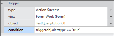 A certain property of triggerobj can be applied as the condition. For example, if Type is "Action Success", then the triggerobj is Action. When the corresponding Action is processed, whether or not to process the next Action according to the property value can be determined.