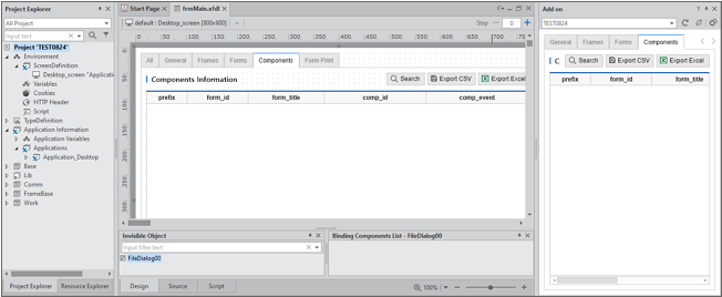 General Frames Forms Components | Returns information of the file used in the project. Puts the returned value in the The function of exporting output results as the CSV file, Excel file.
