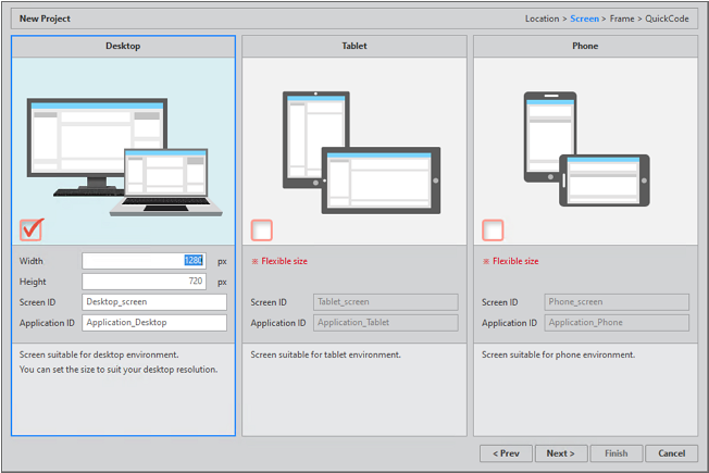 In this step, you select frames that will be used in the Application. You can select different frames for each screen, and you can change frames after the project is created.