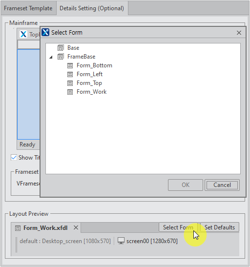 2 | Set Defaults | Designates default Forms for each ChildFrame. The Project Wizard will create such default Forms (e.g. A default Form named 'Form_Left' will be created for a LeftFrame.). |