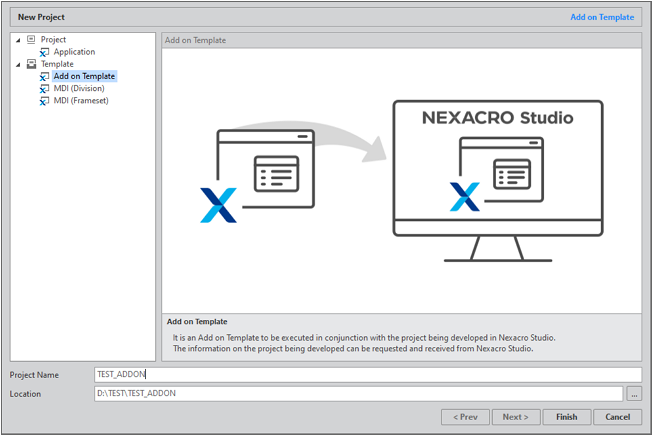 Select the [Template > Add on Template] item in Project Wizard.